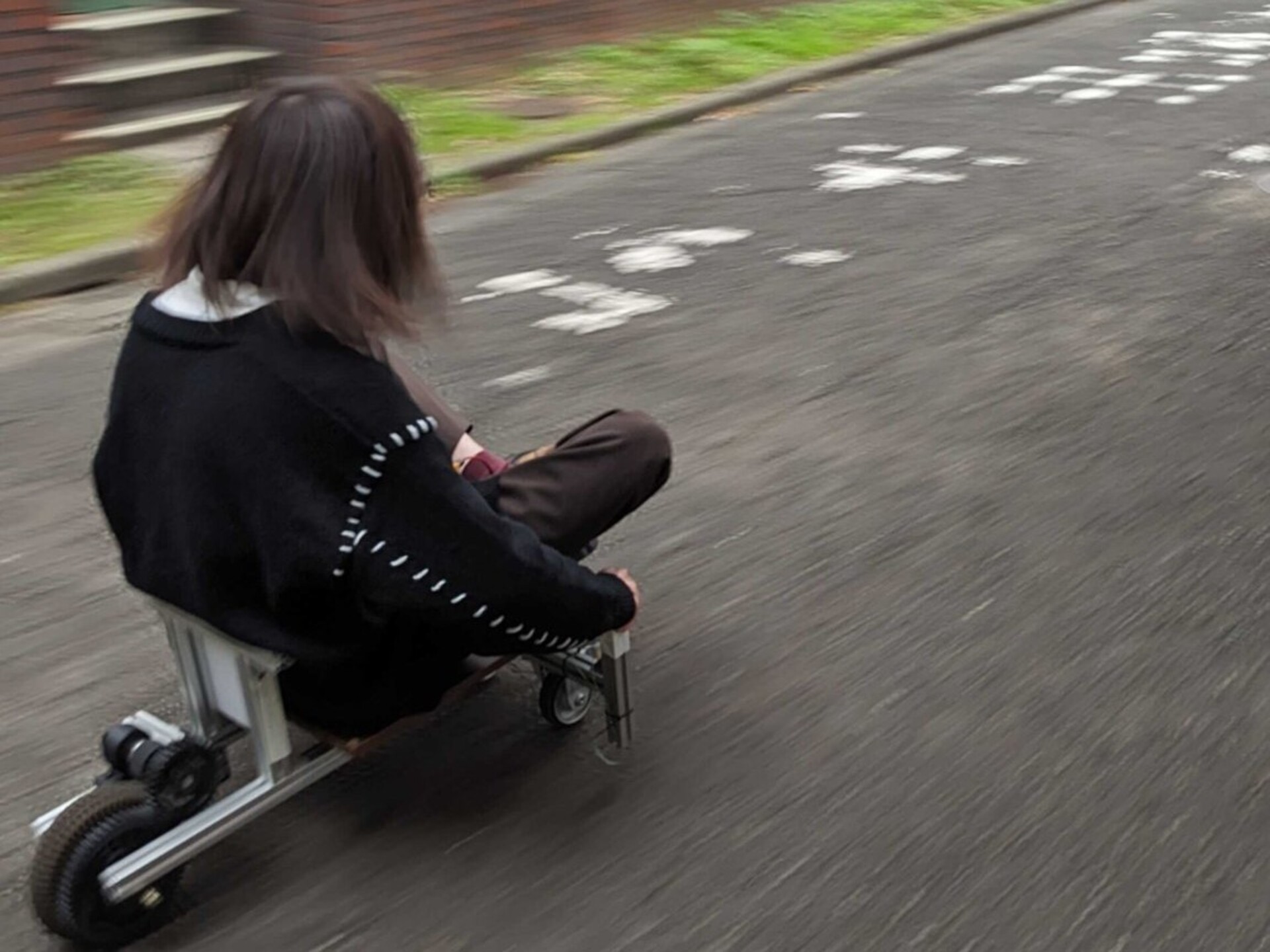 この日の夜やっと全ての部品が完成し、完全な状態で試験走行を行いました。一番心配であったトルク不足も、ギア比を変更後はなんとか解決しました。ほっとしました。